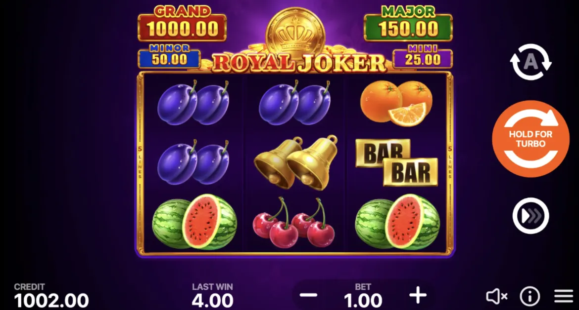 Royal Joker: Hold and Win provides gamers with a timeless slot adventure, enhanced by thrilling contemporary elements and captivating bonus rounds. The essence of this title merges iconic fruit machine icons with fresh mechanics such as Hold and Win incentives, re-spins, jackpot prizes, and multiplier boosts. Participants can anticipate a delightful fusion of simple play and lucrative chances that sustain the thrill. Whether you adore conventional slots or pursue substantial win possibilities with accessible intricacy, this game ensures a captivating and lively gaming experience. We will now explore in greater detail each unique attribute and bonus feature that distinguishes Royal Joker.